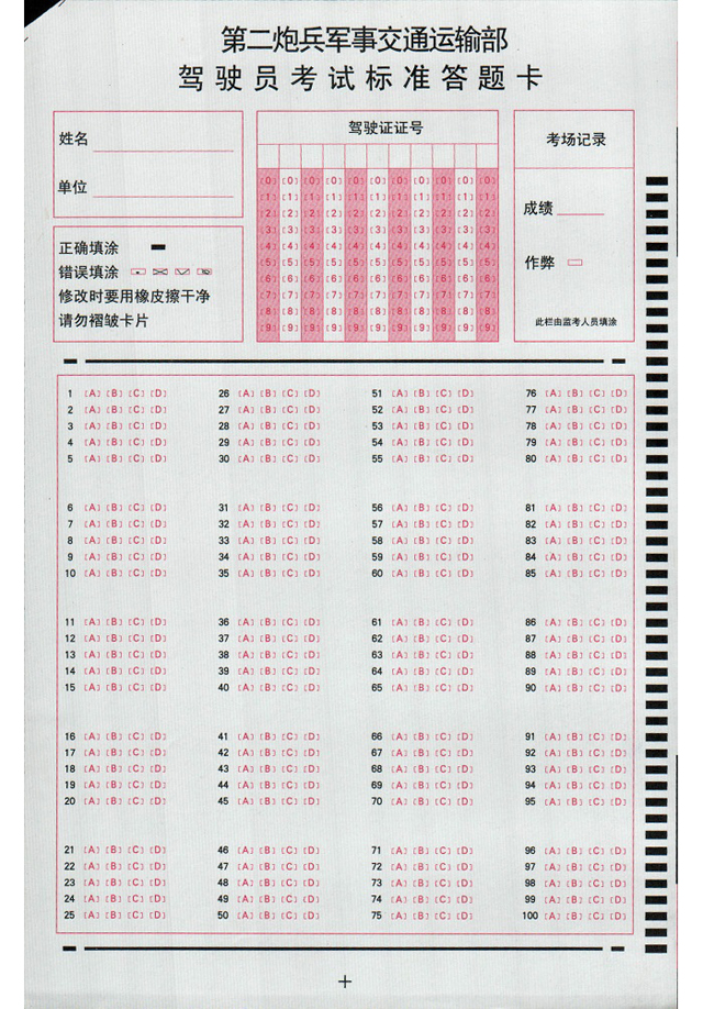 北京特種作業(yè)人員安全技術(shù)標(biāo)準(zhǔn)化考試答題卡