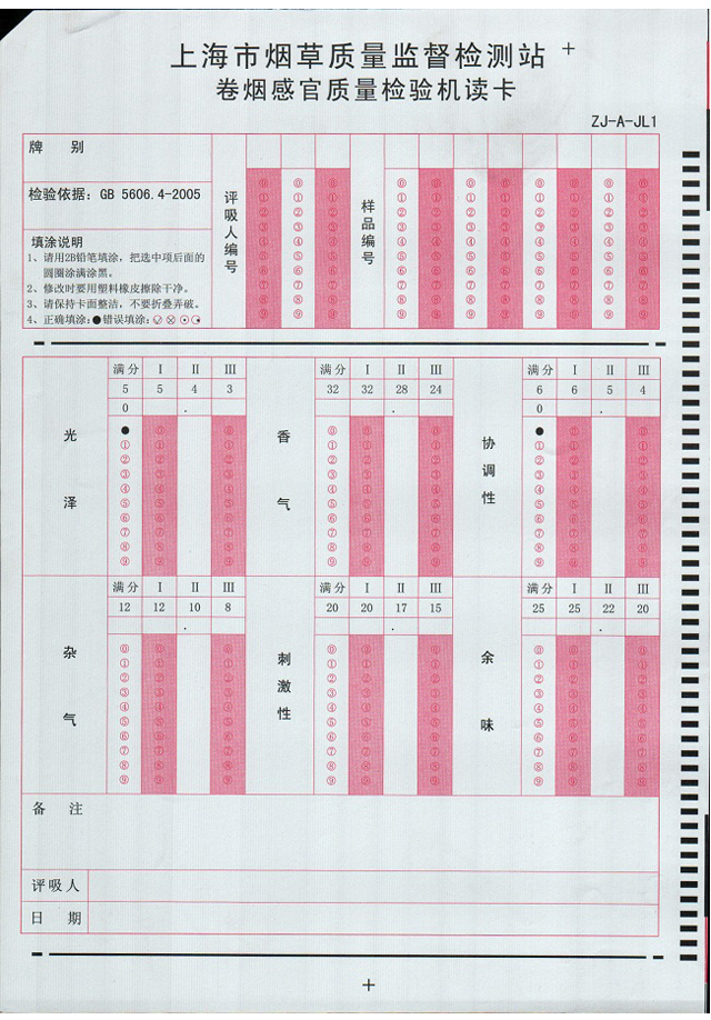 上海煙草感官評(píng)吸卡